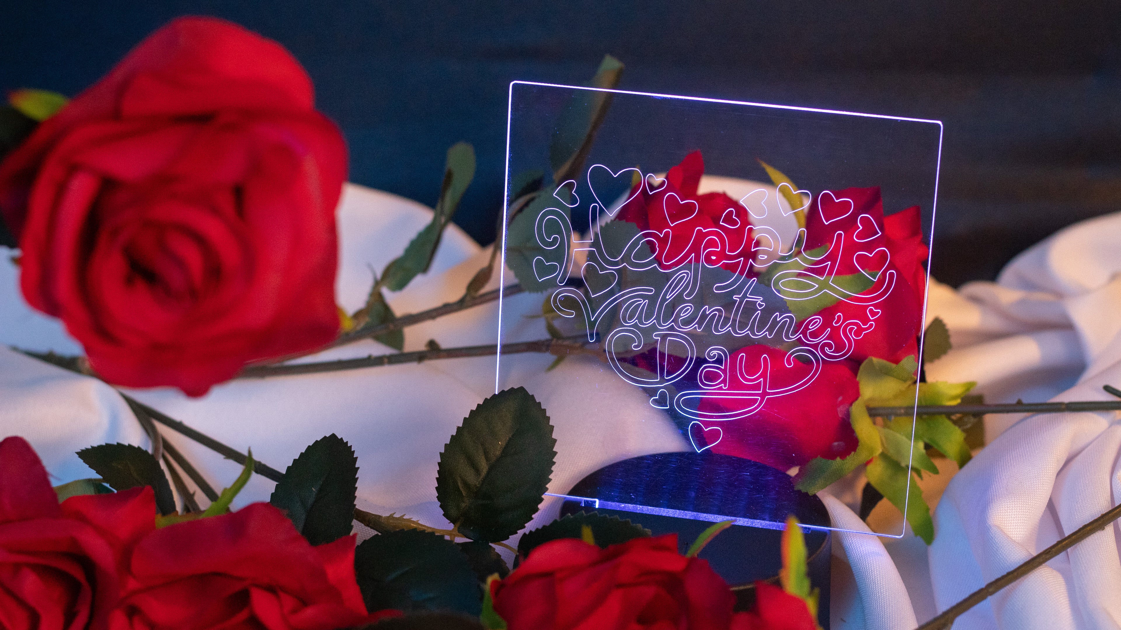 "Happy Valentines Day" in Heart Shape Acrylic Engraved Night Light